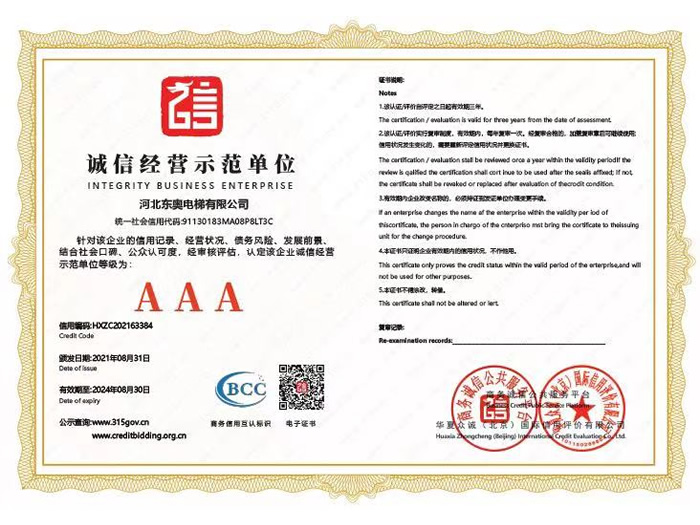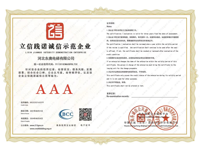 企業信用評價AAA級信用企業